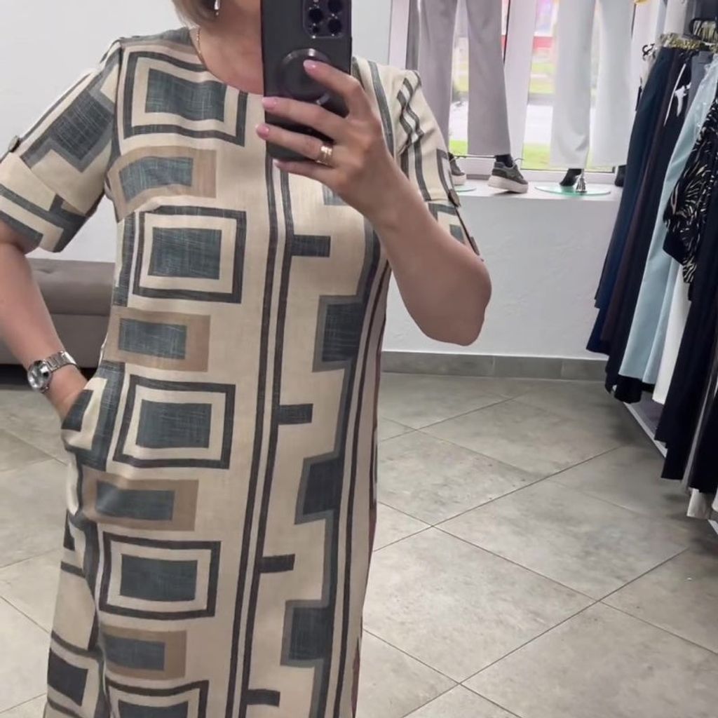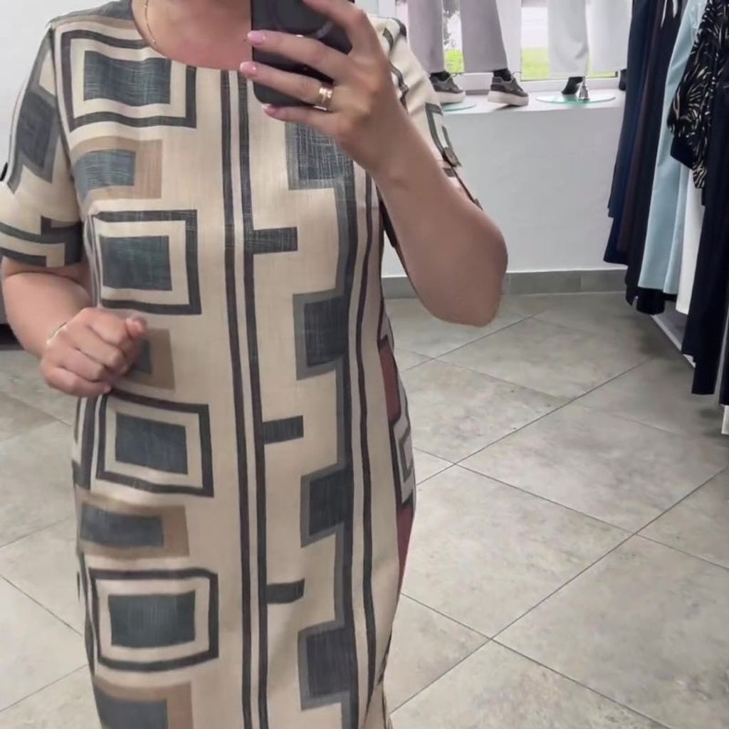 Balení obsahuje: Sada: 1 * Dámské šaty s geometrickým potiskem a kulatým výstřihem.