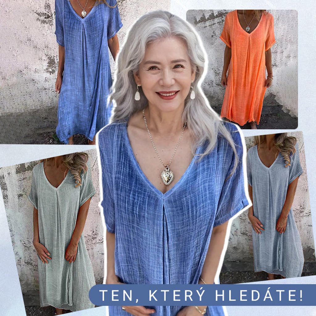 👗 Dámské bavlněné lněné volné dlouhé šaty💖