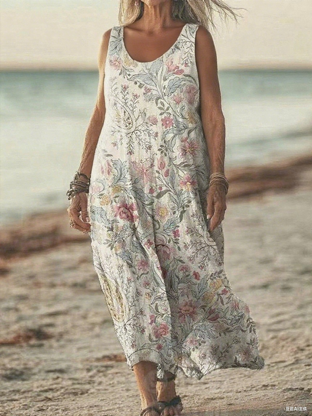Letní Dámské Šaty bez Rukávů s Kulatým Výstřihem – Lehký Bavlněný Komfort a Styl
