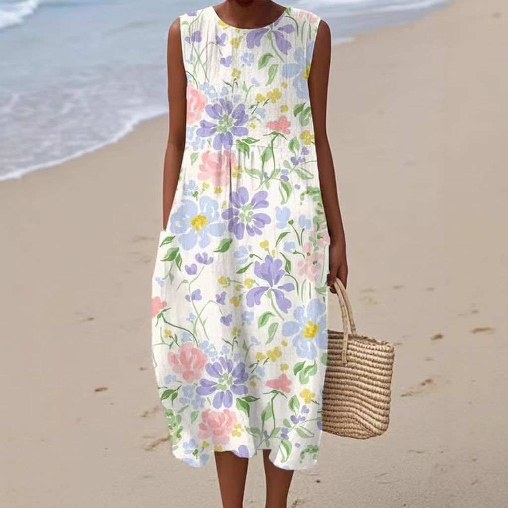 Letní Dámské Šaty bez Rukávů s Kulatým Výstřihem – Lehký Bavlněný Komfort a Styl
