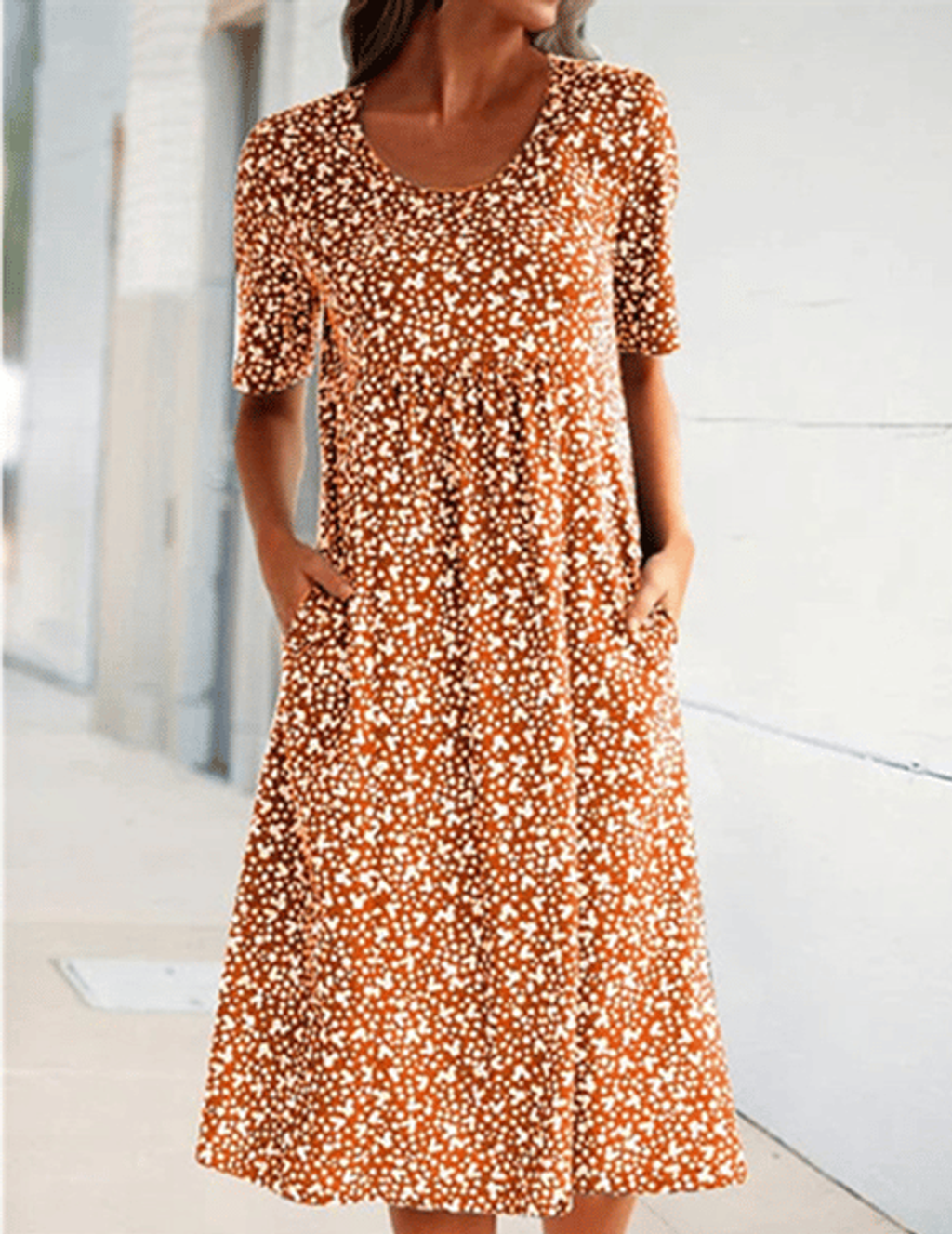 Příležitostné dámské květinové šaty Scoop Neck (8 barev s kapsami)