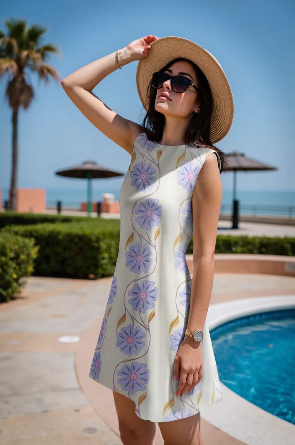 Rozjasněte svůj letní šatník těmito nadčasovými květinovými šaty bez rukávů s kulatým výstřihem! Jemný květinový potisk v kombinaci s lehkou a prodyšnou tkaninou je ideální volbou pro teplé dny, romantické procházky i letní párty. Díky volnému střihu a elegantnímu designu se budete cítit pohodlně a zároveň stylově.