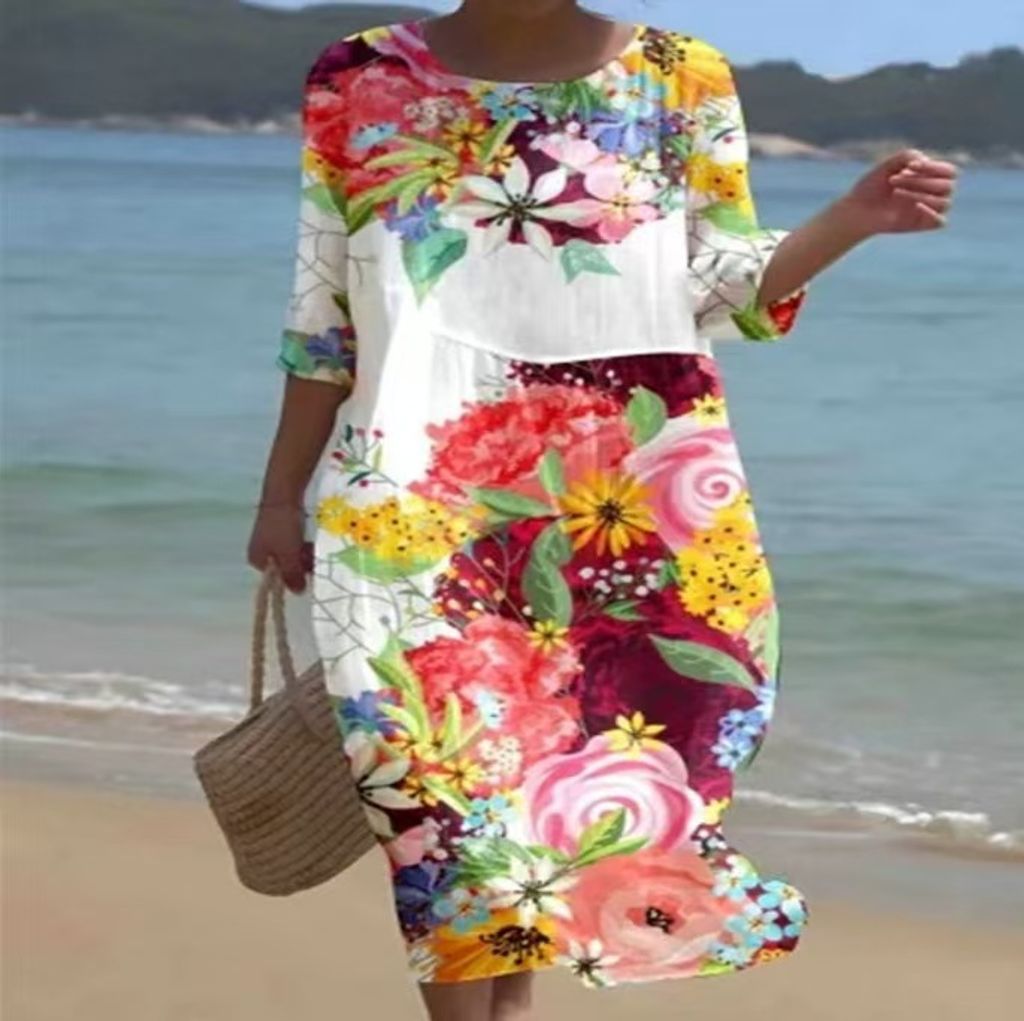 Objevte šaty, které kombinují eleganci s každodenním pohodlím! Tyto letní dámské šaty s kulatým výstřihem a květinovým vzorem jsou ideální volbou pro procházky městem, víkendový brunch nebo dovolenou.