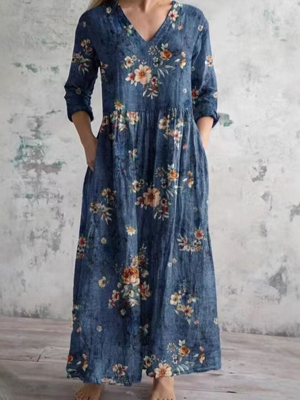 Tato volná dámská lněná šaty s výstřihem do V a praktickými kapsami jsou ideální pro jaro a léto. Vyrobené z prodyšné směsi bavlny a lnu, zajišťují příjemný pocit i v horkých dnech. Minimalistický design v kombinaci s elegantním střihem vytváří nadčasový look, který si zamilujete. K dispozici v různých barvách a velikostech.