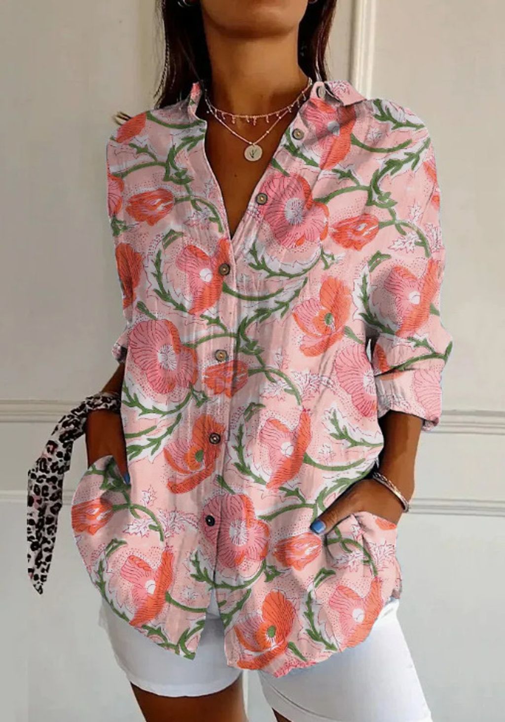 Design: Výstřih do V a elegantní knoflíky na přední straně dodávají košili moderní vzhled a ženskou eleganci.