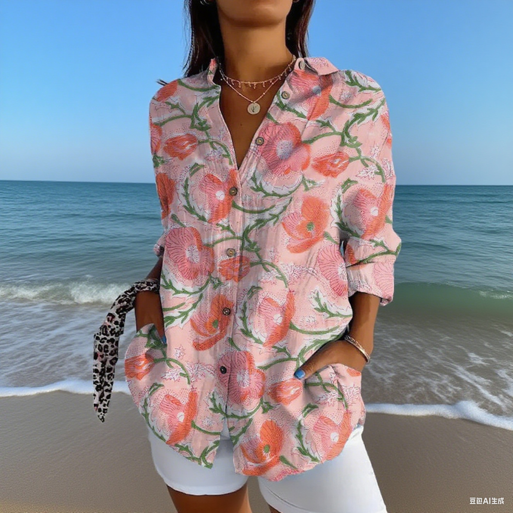 Stylové dámské šaty s výstřihem do V, jemným potiskem a dekorativními knoflíky – ideální volba pro ženy, které chtějí spojit eleganci s pohodlím. Perfektní na každodenní nošení i výjimečné příležitosti.