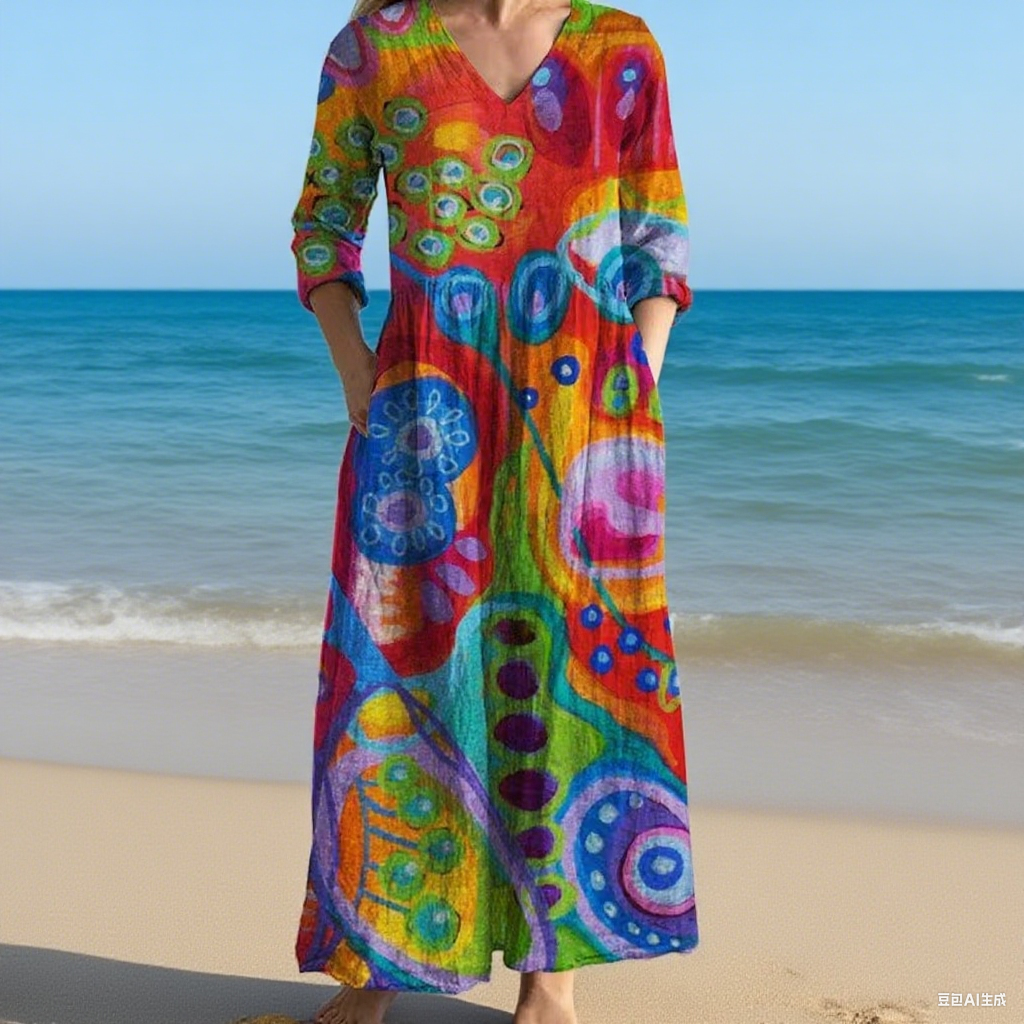 Tato volná dámská lněná šaty s výstřihem do V a praktickými kapsami jsou ideální pro jaro a léto. Vyrobené z prodyšné směsi bavlny a lnu, zajišťují příjemný pocit i v horkých dnech. Minimalistický design v kombinaci s elegantním střihem vytváří nadčasový look, který si zamilujete. K dispozici v různých barvách a velikostech.