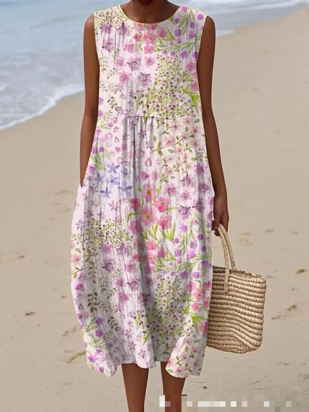 Letní Dámské Šaty bez Rukávů s Kulatým Výstřihem – Lehký Bavlněný Komfort a Styl