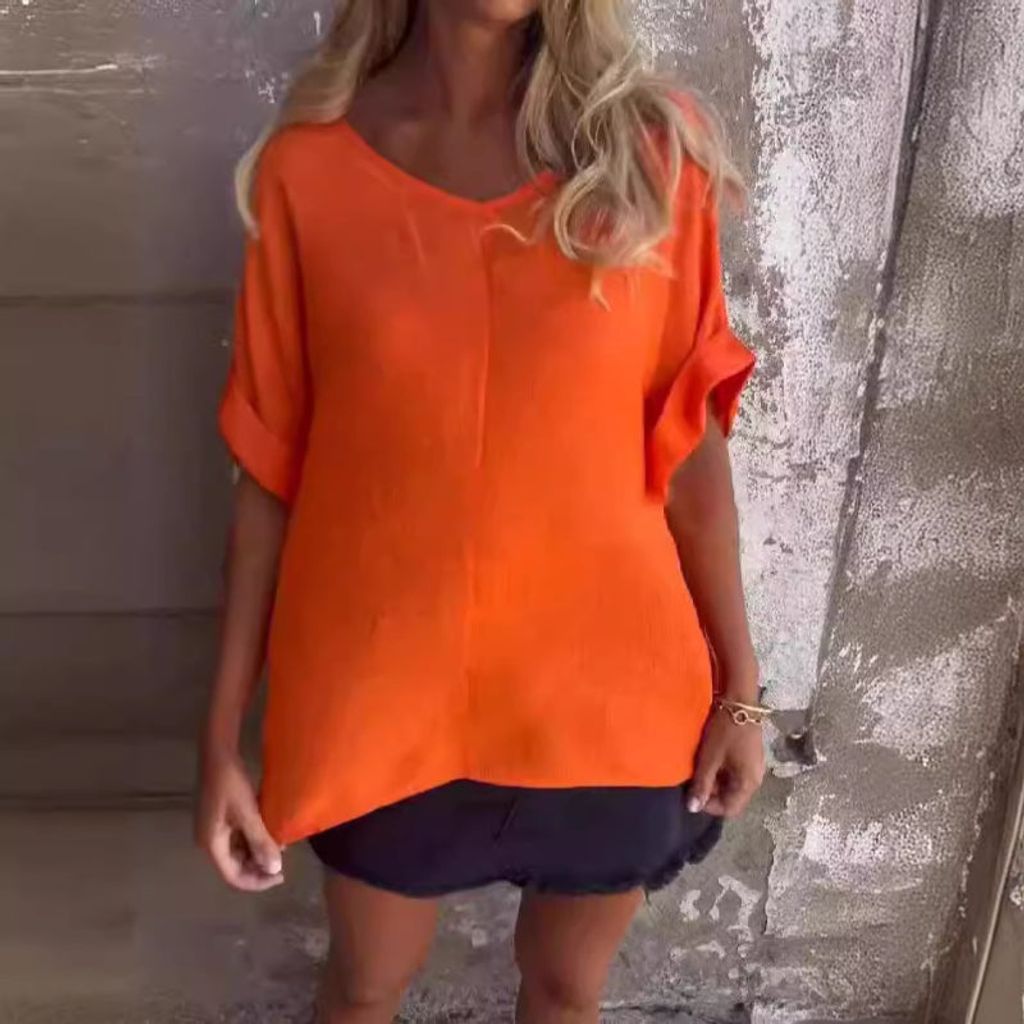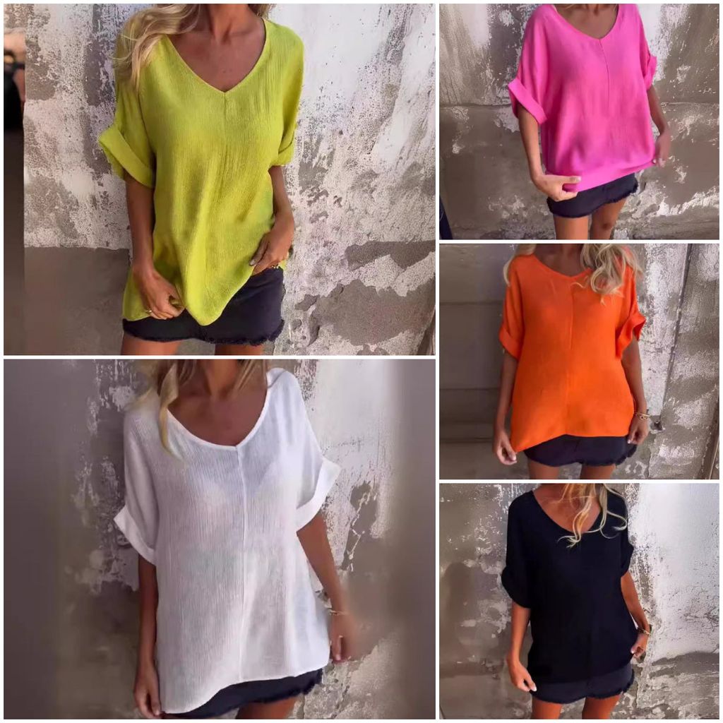 🌿 Pohodlné a prodyšné | Nadměrné dámské lněné tričko s výstřihem do V
