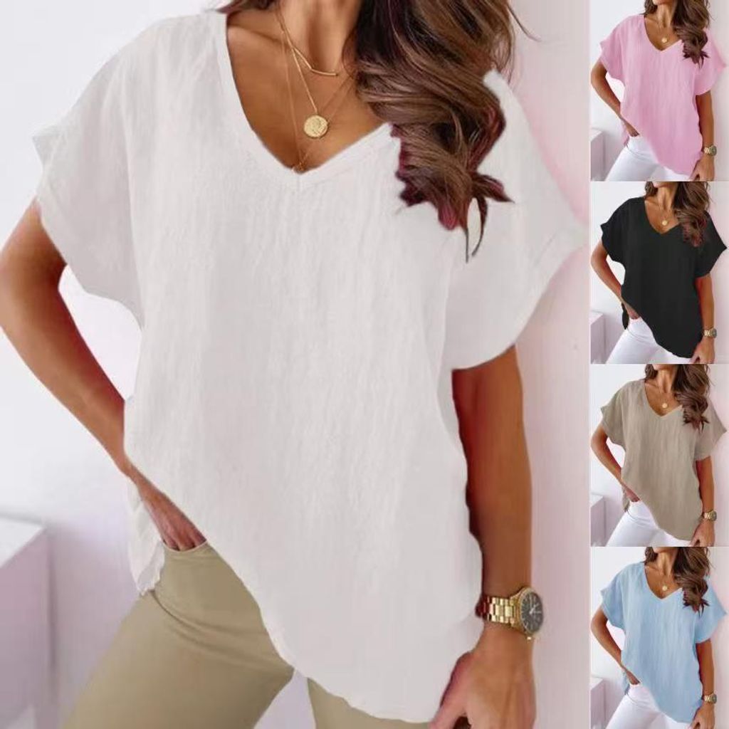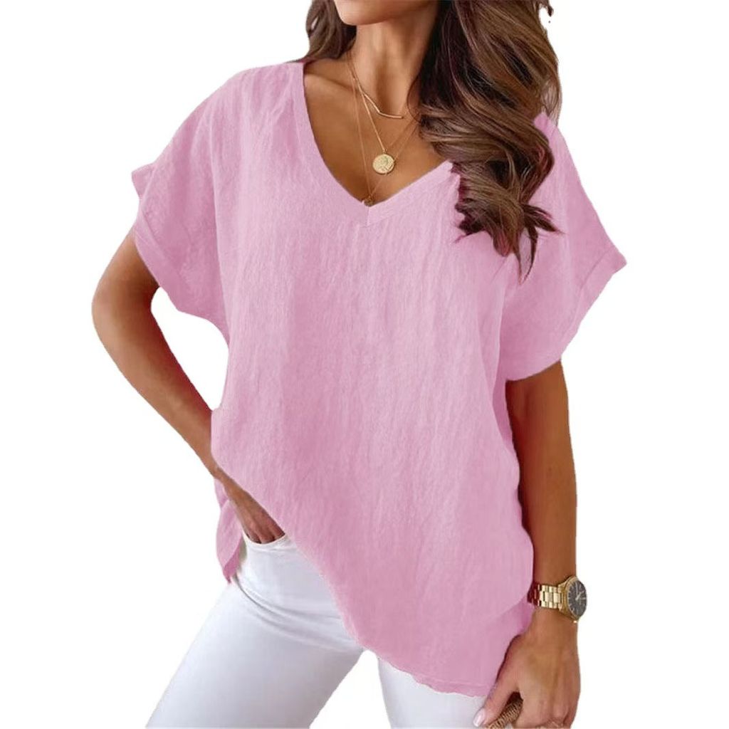 🌿 Pohodlné a prodyšné | Nadměrné dámské lněné tričko s výstřihem do V