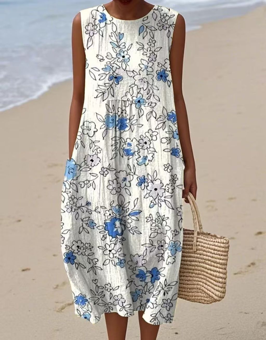 ✨Letní Dámské Šaty bez Rukávů s Kulatým Výstřihem