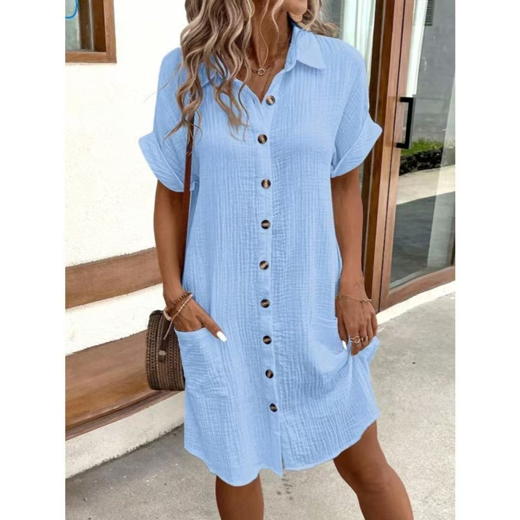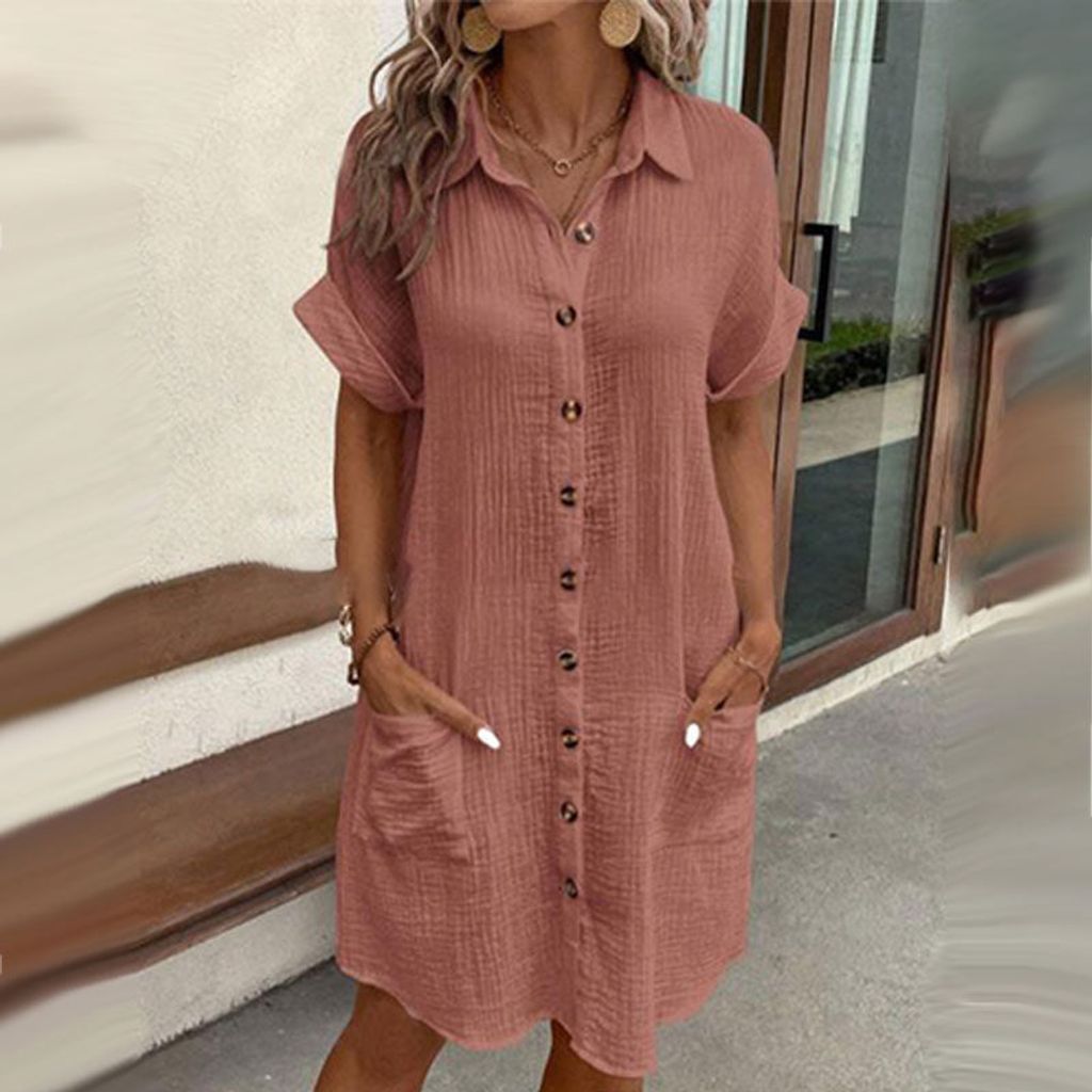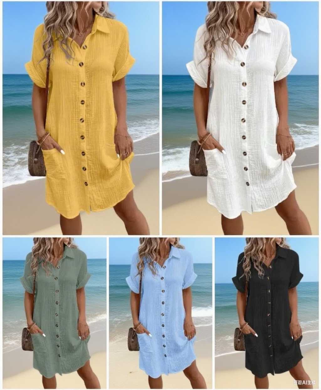 Objevte kouzlo léta s těmito elegantními dámskými šaty! Vyrobené z lehkého, prodyšného materiálu, nabízejí maximální pohodlí během teplých dnů. Vyznačují se stylovým výstřihem do V, nápaditým celoplošným potiskem a ozdobnými knoflíky vpředu. Volný střih lichotí každému typu postavy, a proto se tyto šaty stanou vaší oblíbenou volbou pro každodenní nošení i speciální příležitosti.