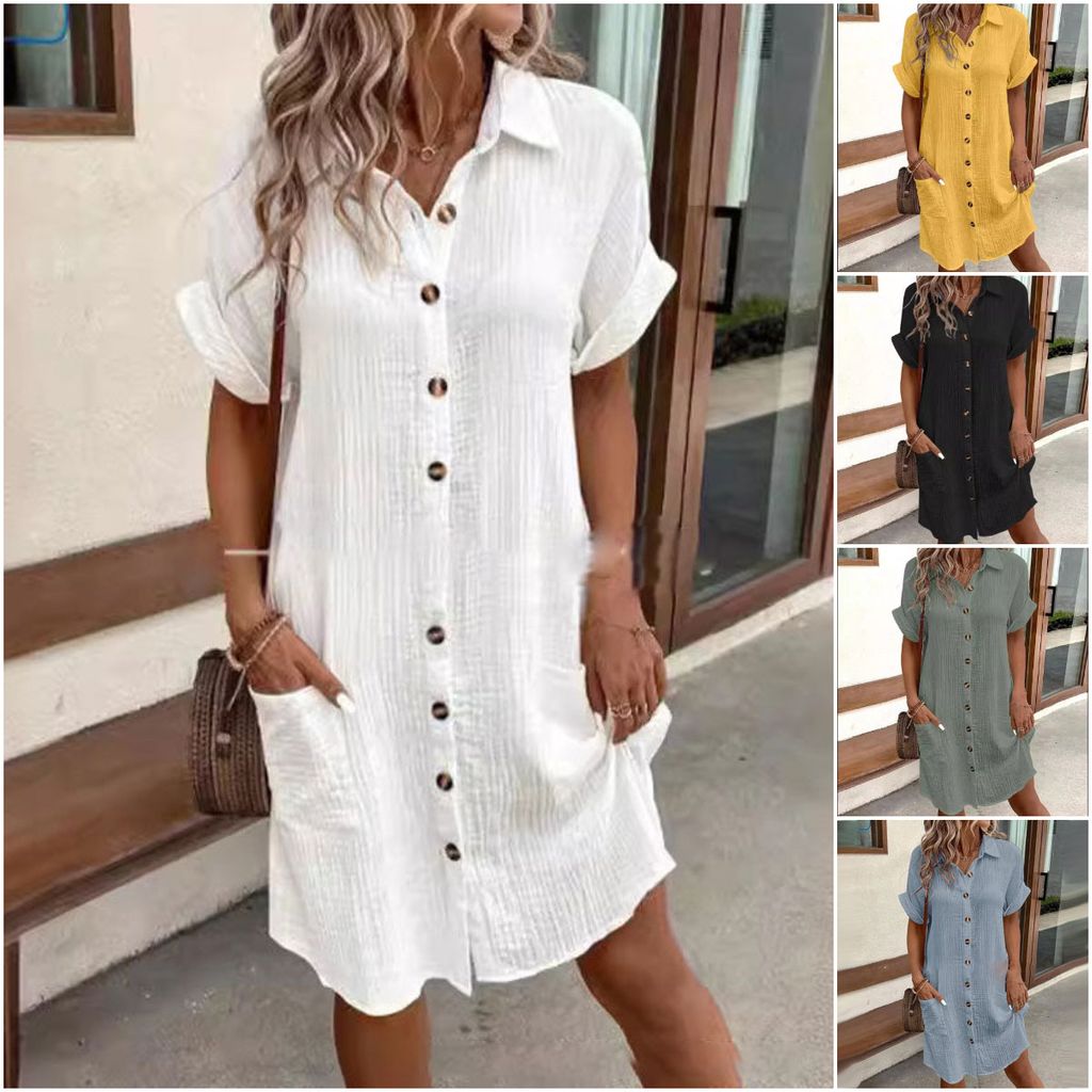 🌸2025 Dámské šaty s výstřihem do V a potiskem na knoflíky