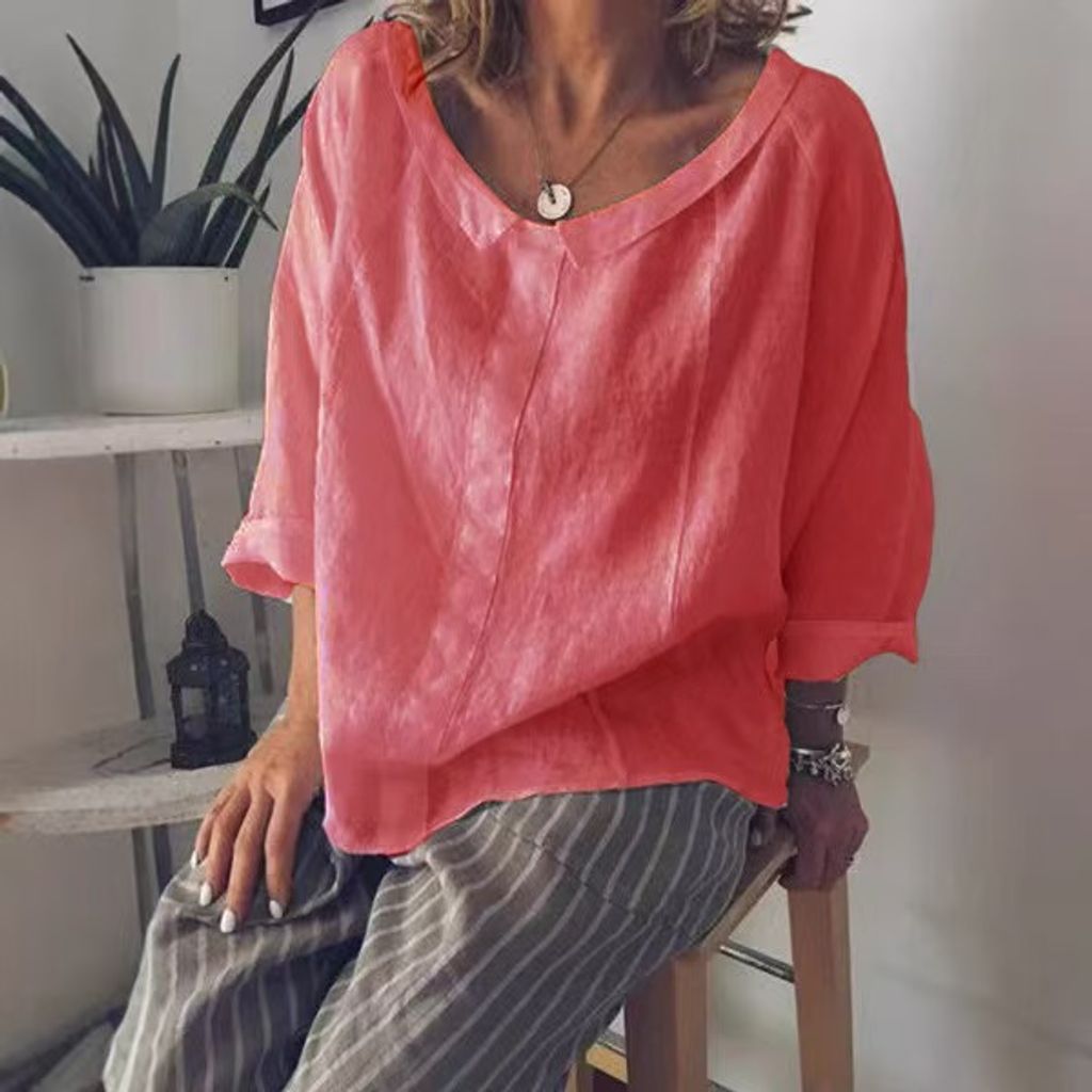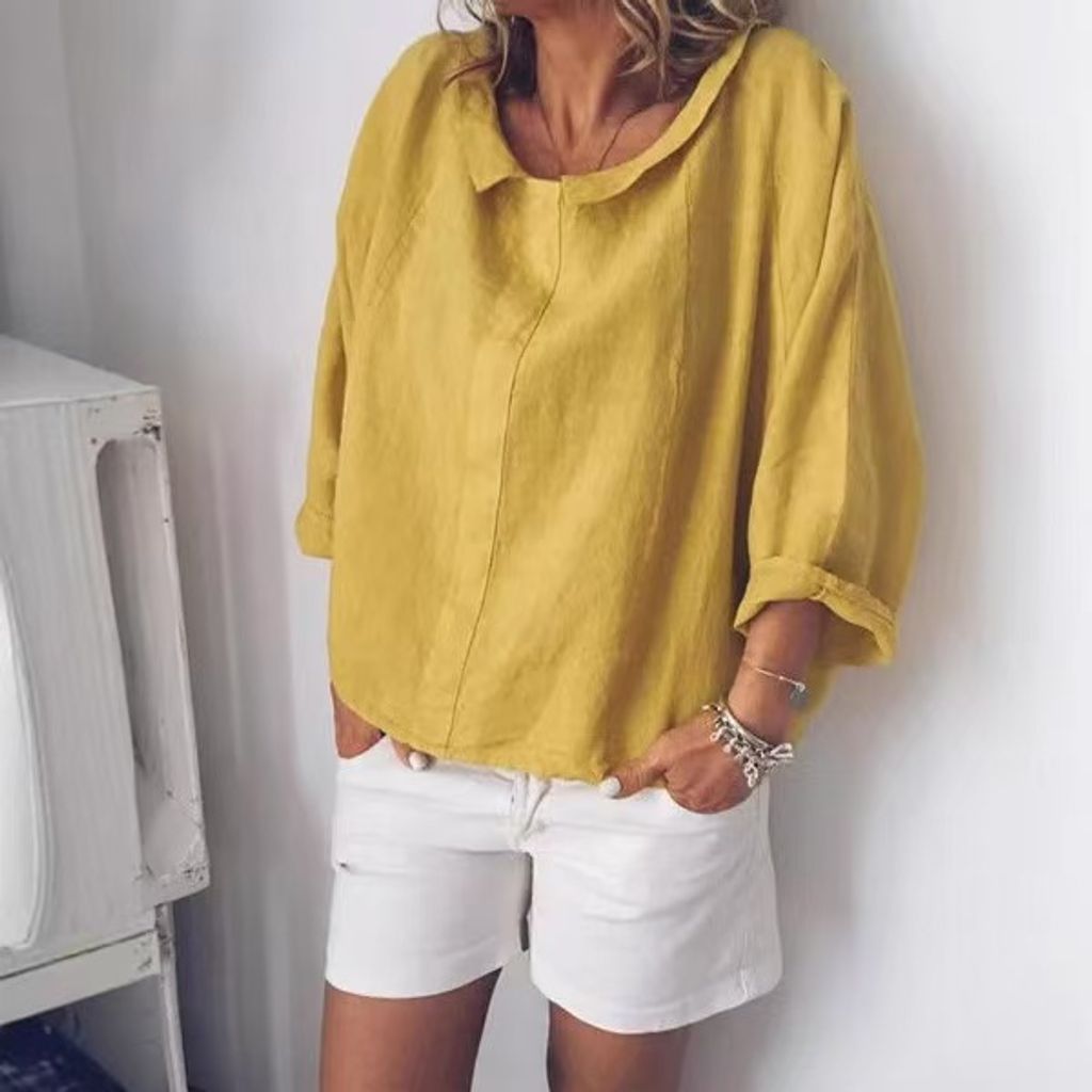 Dámské bavlněné a lněné tričko s kulatým výstřihem