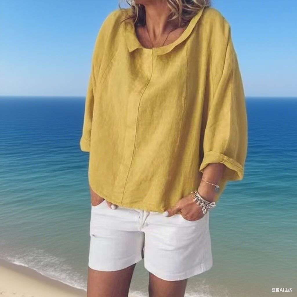 Objevte jednoduchou eleganci a každodenní pohodlí. Naše volné tričko s kulatým výstřihem je vyrobeno z přírodní směsi bavlny a lnu. Je vhodné pro každodenní nošení i volnočasové aktivity – je prodyšné, příjemné na dotek a stylové.