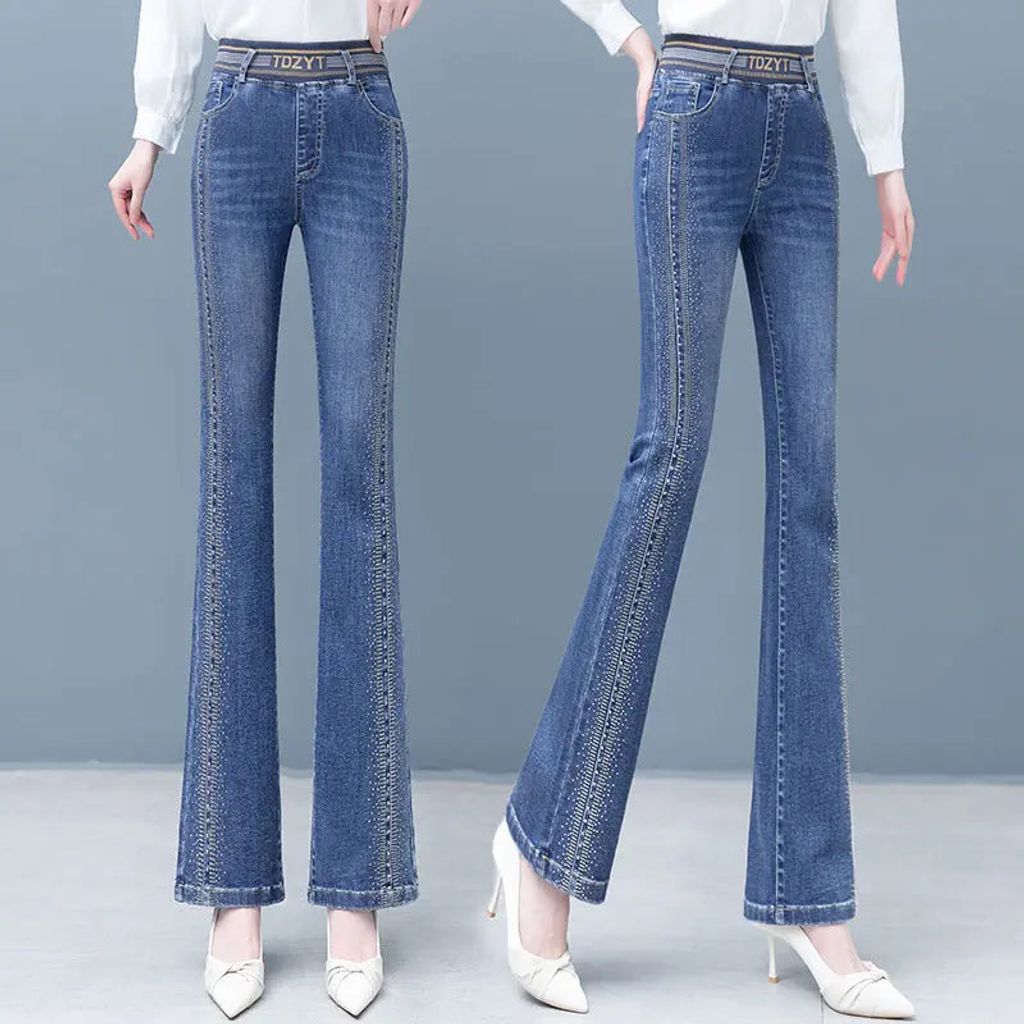 Dámské elastické džíny s vysokým pasem a zvonovým spodkem