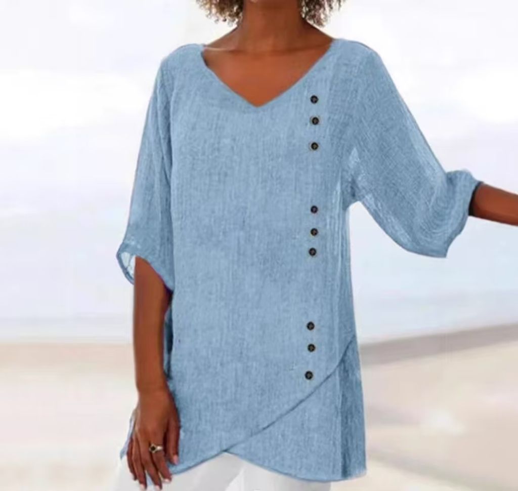 Dámské Tričko z Bavlněného Lnu s Výstřihem do V