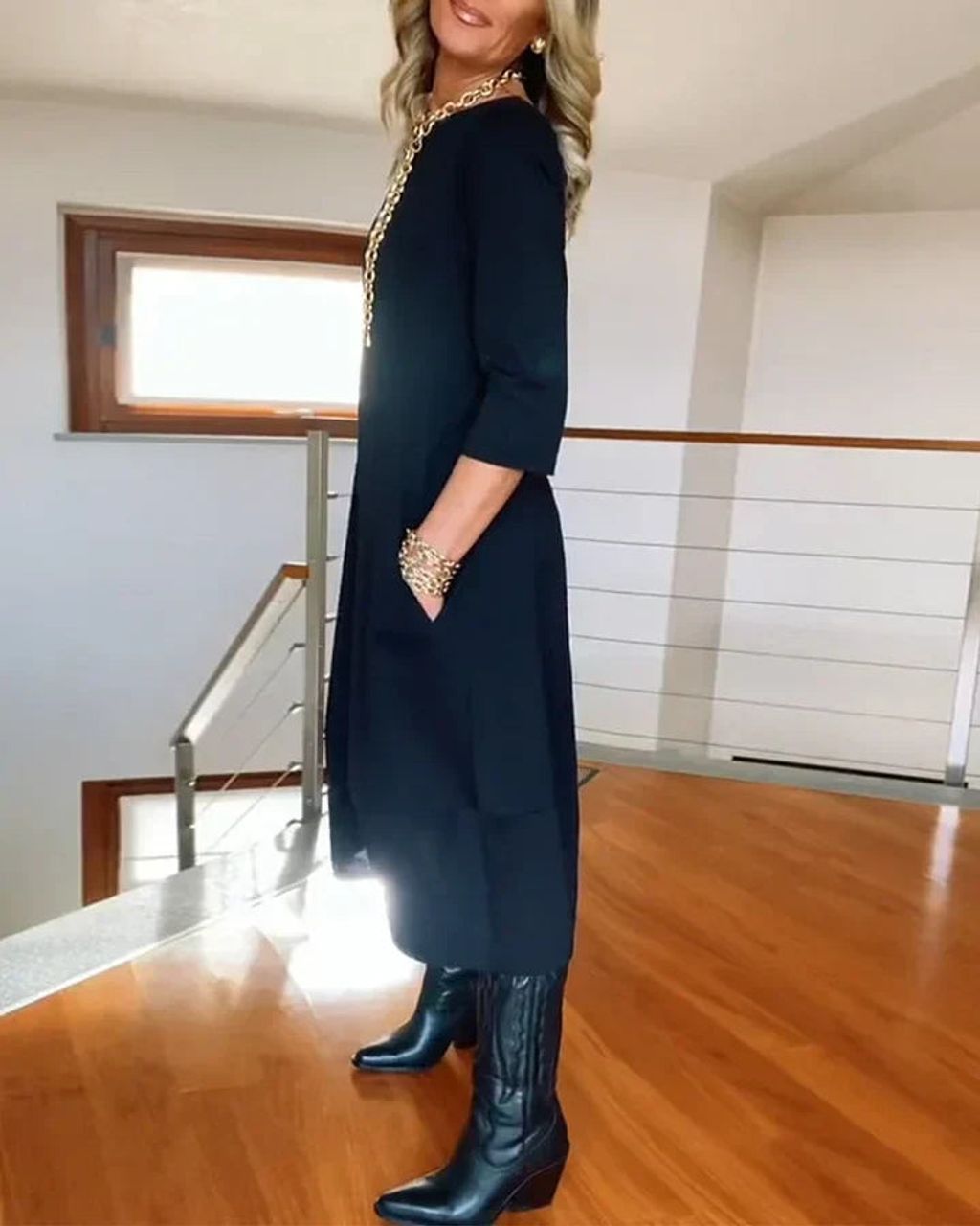 - Balení obsahuje: Dámské ležérní šaty s dlouhým rukávem a kulatým výstřihem.