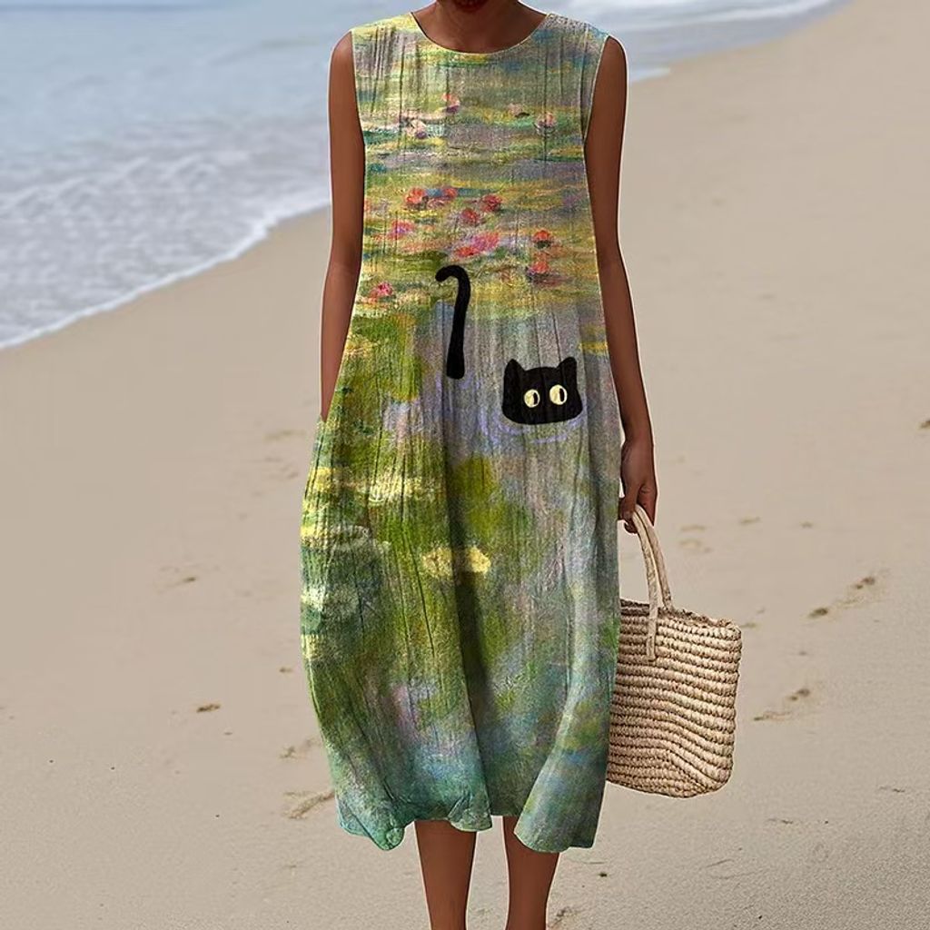 Letní Dámské Šaty bez Rukávů s Kulatým Výstřihem – Lehký Bavlněný Komfort a Styl