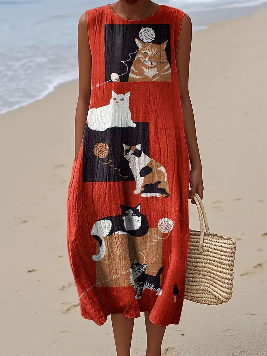 Letní Dámské Šaty bez Rukávů s Kulatým Výstřihem – Lehký Bavlněný Komfort a Styl