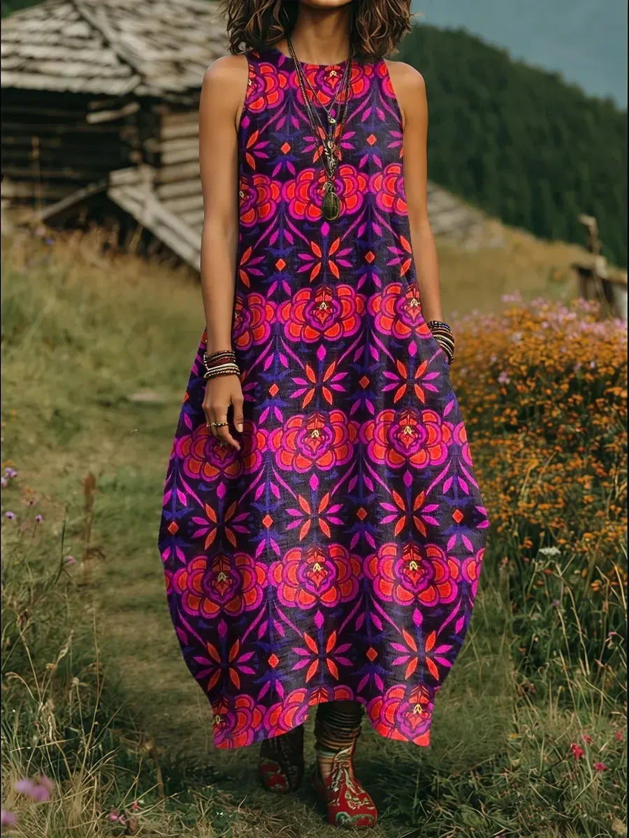 Letní Dámské Šaty bez Rukávů s Kulatým Výstřihem – Lehký Bavlněný Komfort a Styl