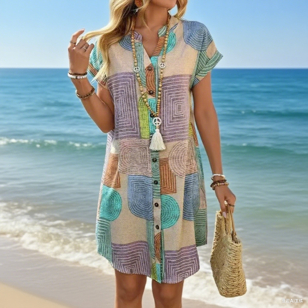 🌸2025 Dámské šaty s výstřihem do V a potiskem na knoflíky