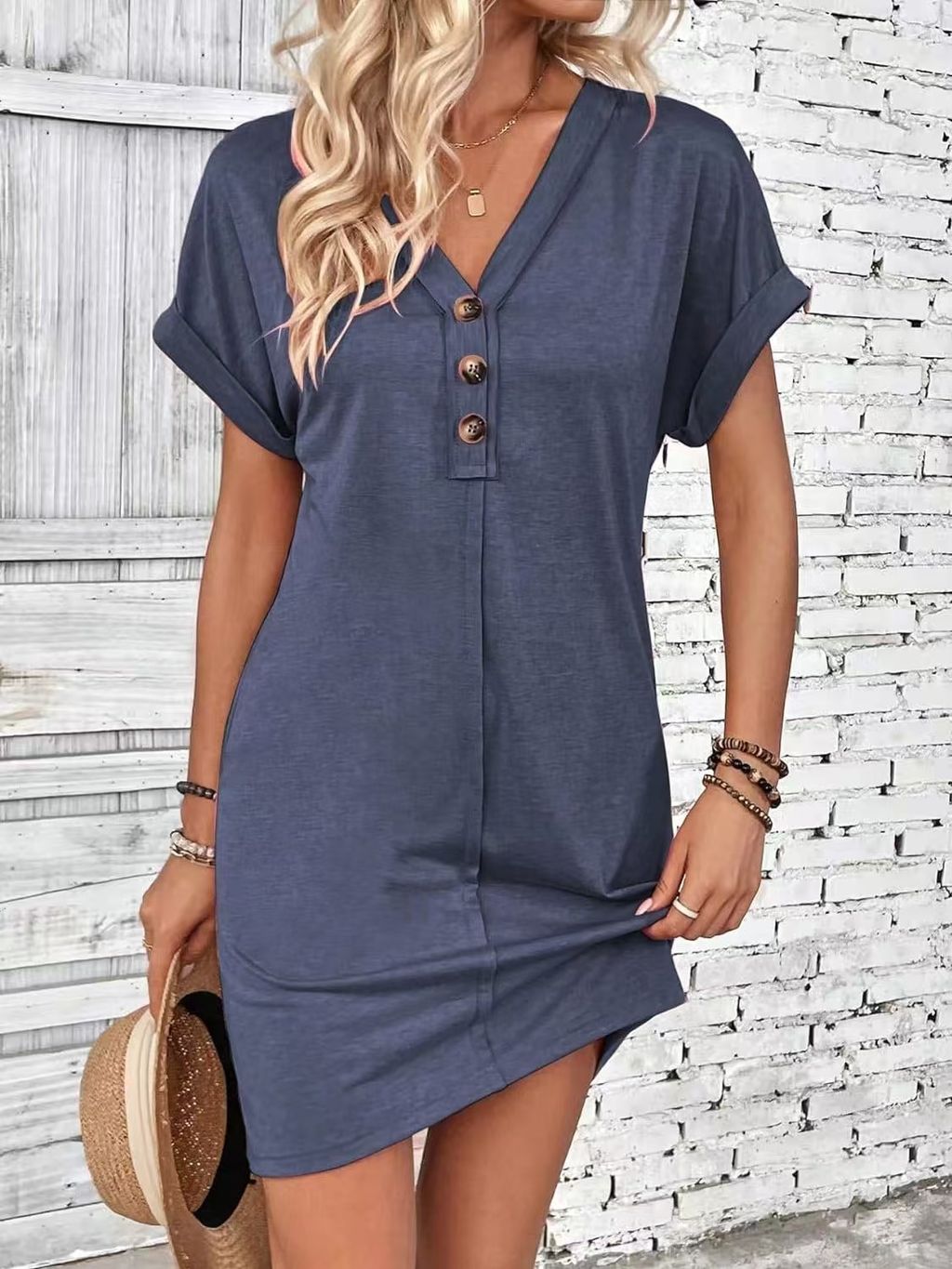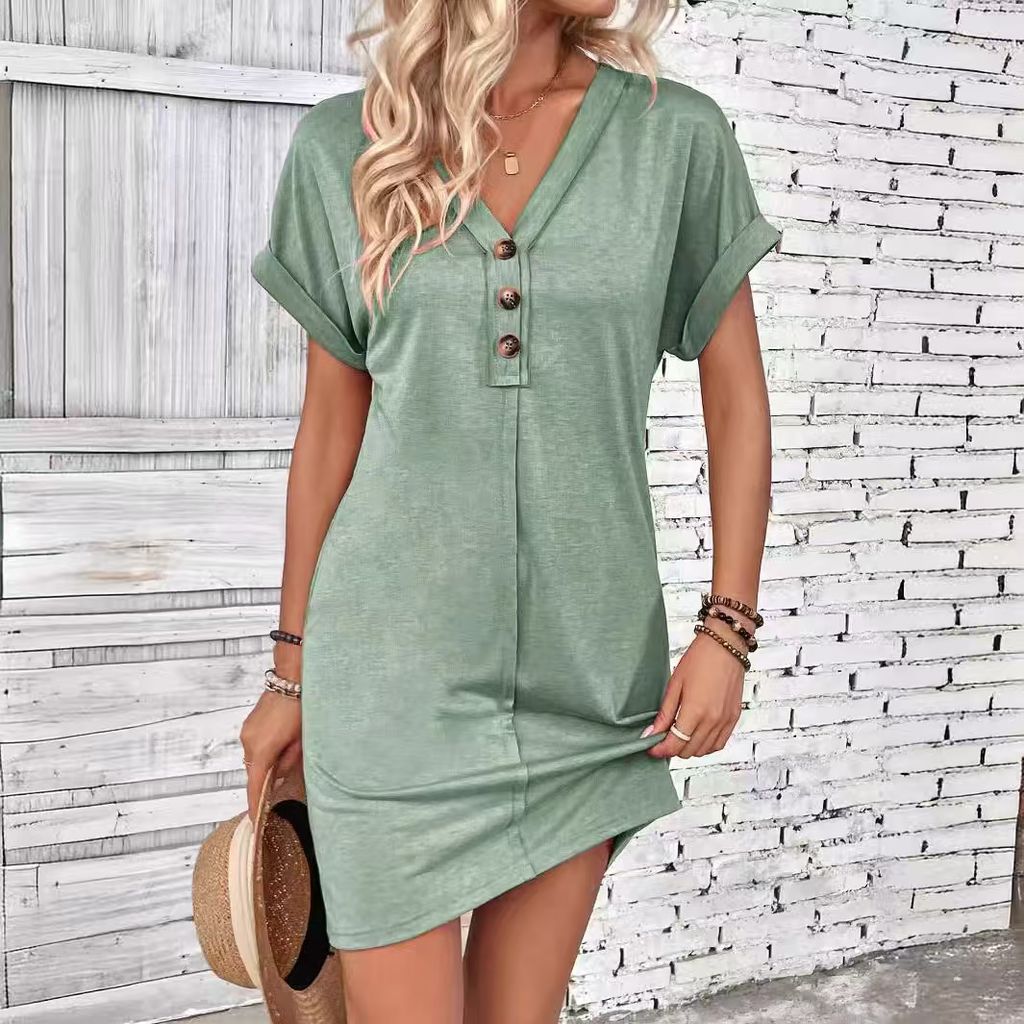 Elegantní letní šaty s jemnými volánkovými rukávy a lichotivým výstřihem do V jsou perfektní volbou pro každou příležitost – do práce, na večeři nebo jen tak do města.